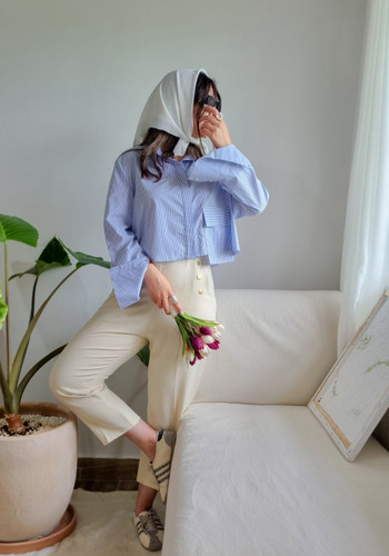 شومیز راهراه آبی کمرنگ۸۵۰٬۰۰۰ تومان